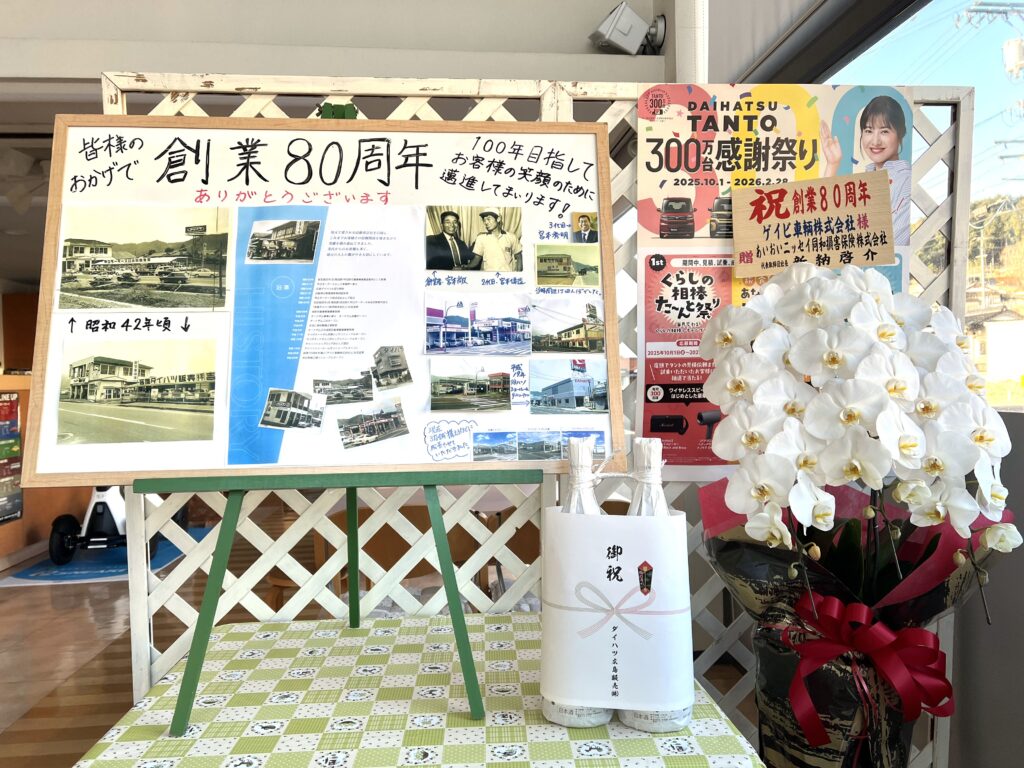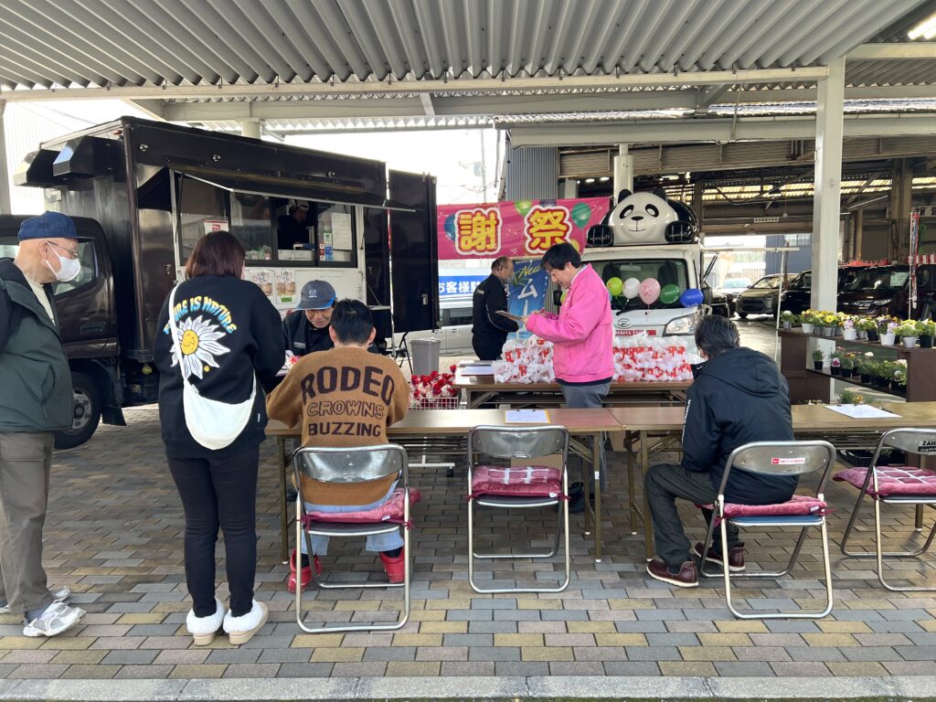 2026年 春の大感謝祭 盛況!お知らせ 春の大感謝祭! 2026年2月14日(土)15日(日)、春の大感謝祭を開催いたしました。 2日とも肌寒い気温ではありましたが、たくさんのお客様にご来店いただきました! キッチンカーのたい焼きや花の小鉢の来場プレゼントも好評でしたが、8年ぶりに復活したうどんは一時満席になるほど。 たくさんの方に「美味しかった!」というお声をいただきました。 今回のキッチンカーは「みなせん」さんに来ていただきました。 焼き立ての美味しいたい焼きをありがとうございました! 2026年は弊社の創業80周年。 節目の年に多くのお客様に足を運んでいただきました。 これからも地域に愛され選んでいただけるお店を目指して日々精進してまいります。 たくさんのご来店ありがとうございました!